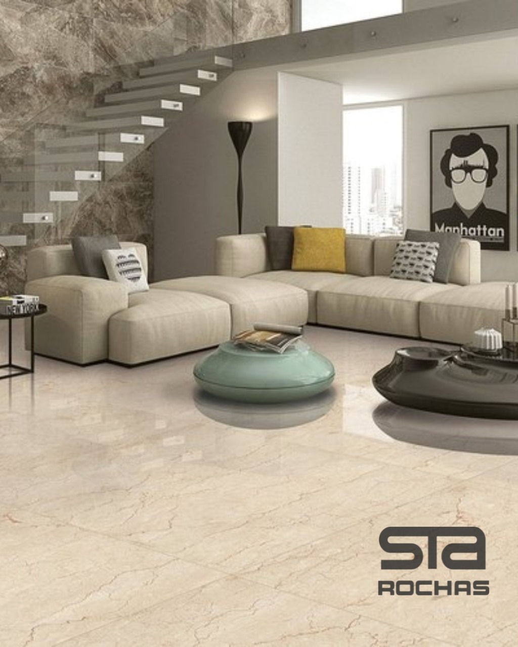 Sua tonalidade clara e discreta cria uma base perfeita para ambientes elegantes e atemporais.
