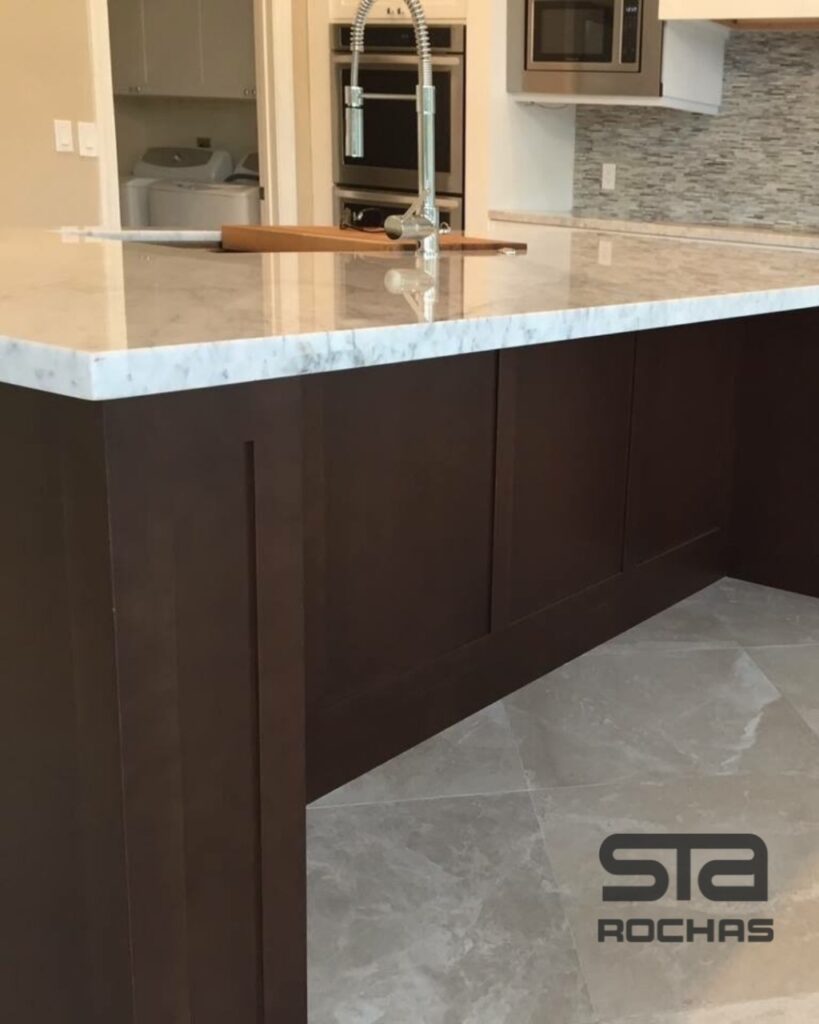 Seja em bancadas, painéis ou pisos, esse mármore traz aconchego e requinte ao espaço.