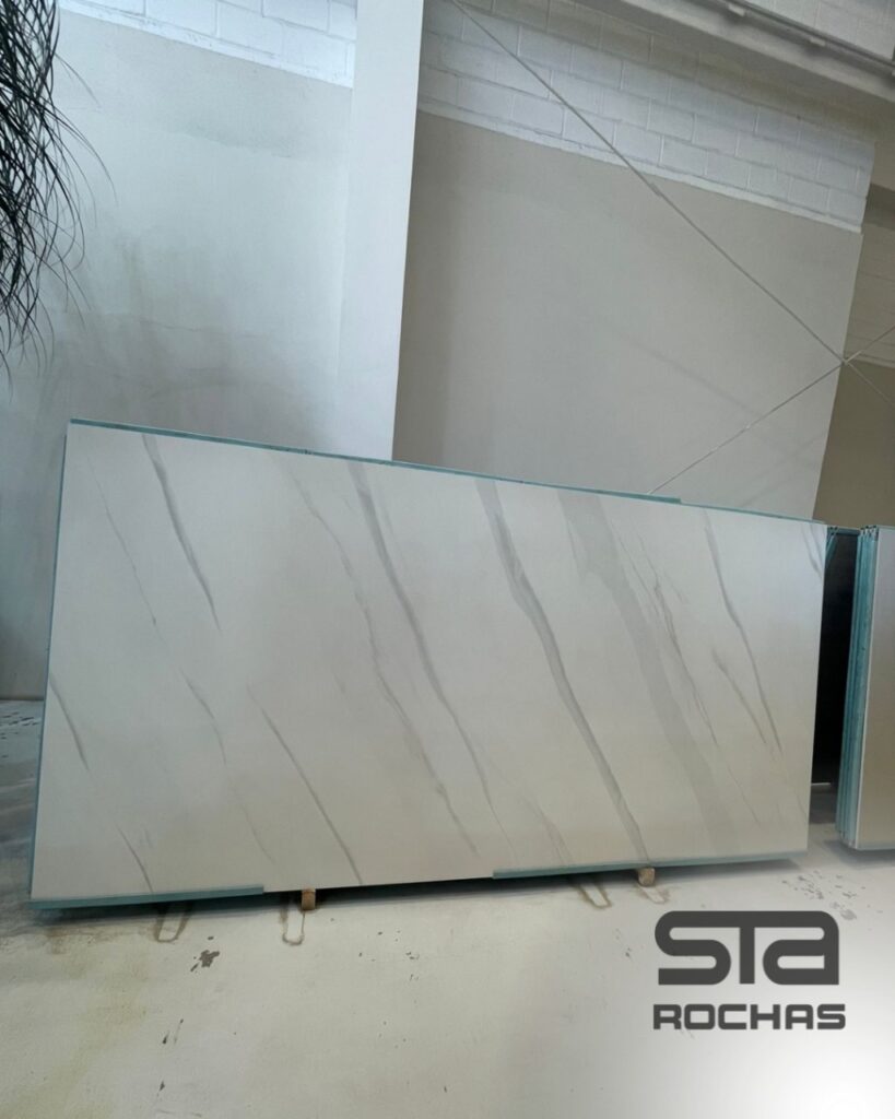 A Lâmina Calacata, fruto da nossa parceria com a Portinari Petra, é a escolha ideal para projetos que valorizam leveza, sofisticação e durabilidade.